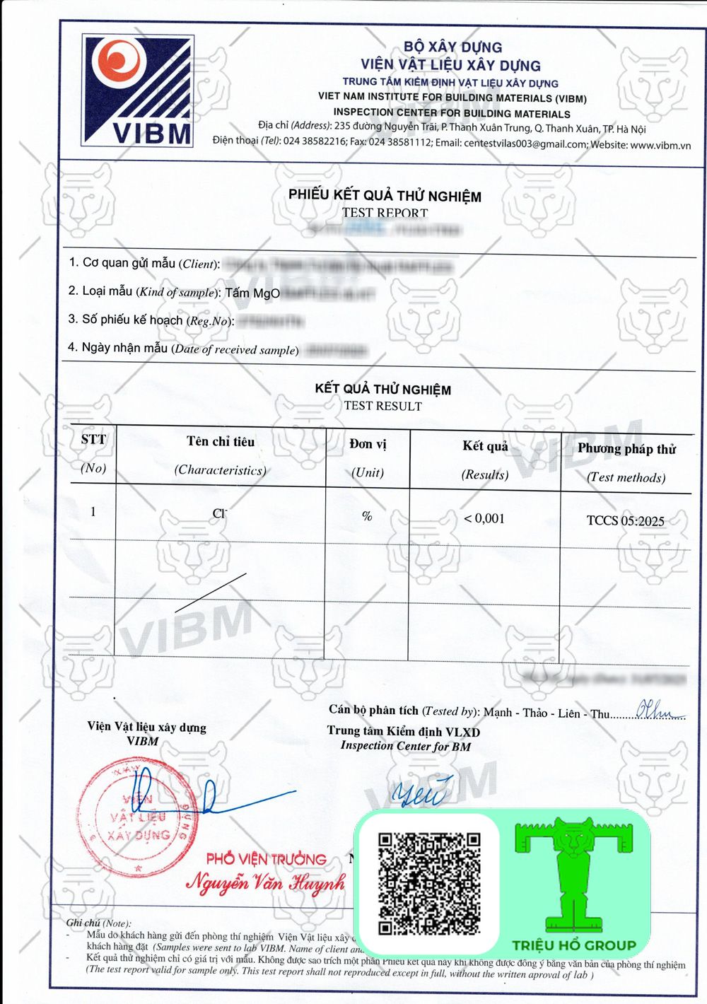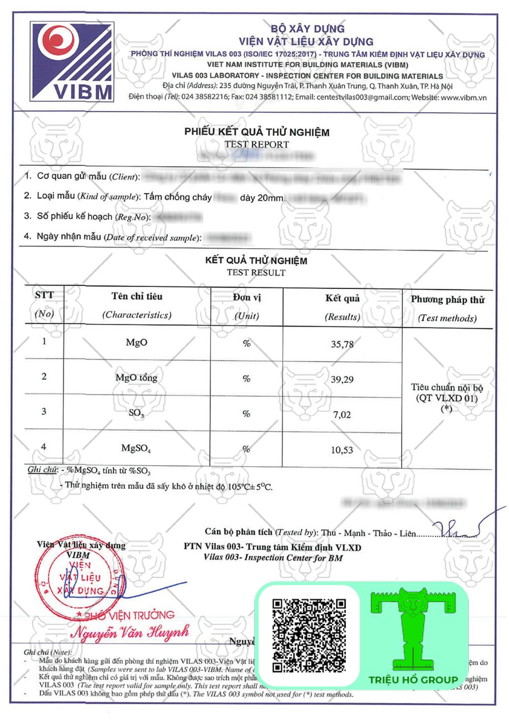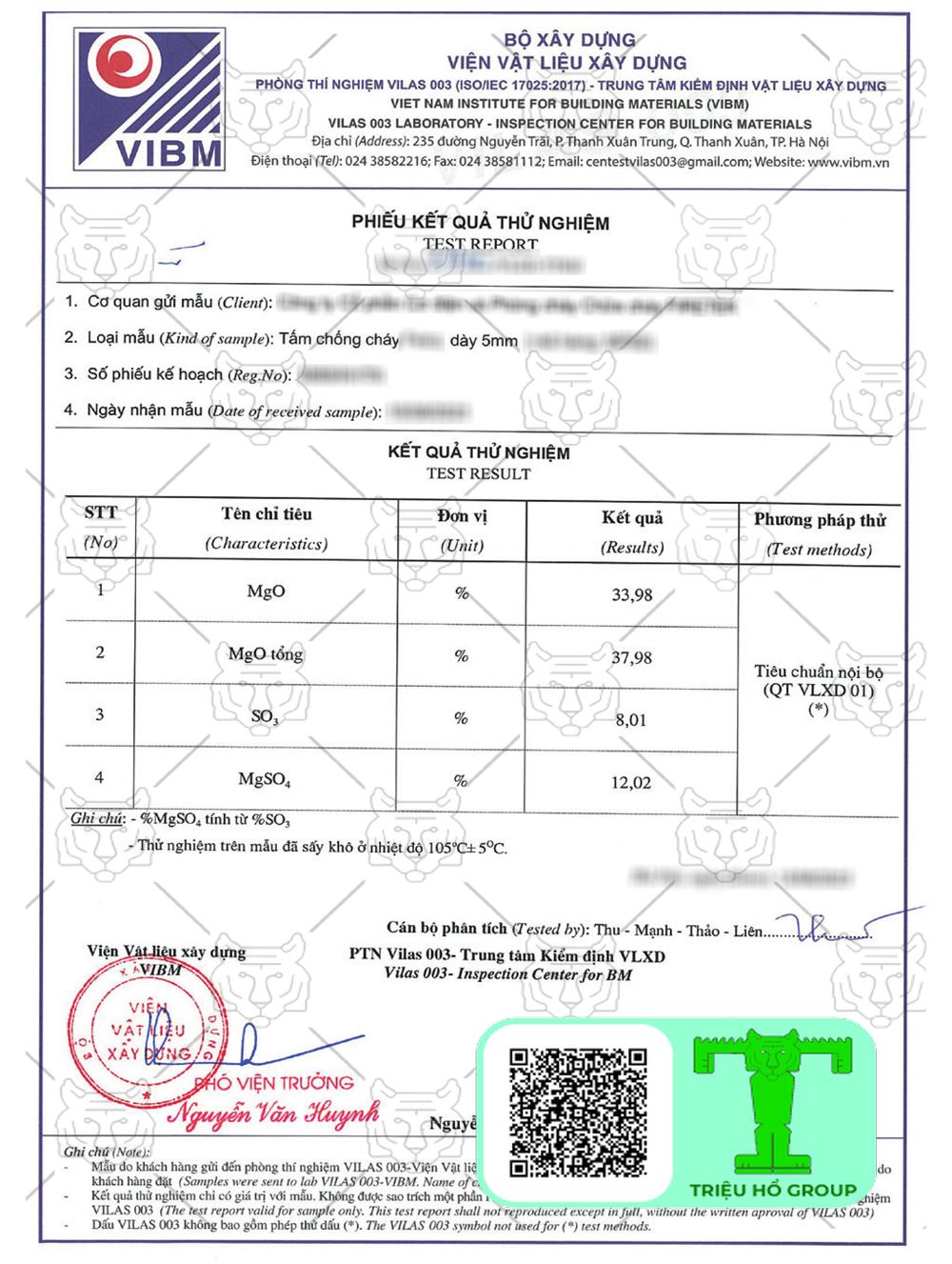 Chứng chỉ chất lượng tấm chống cháy MGO